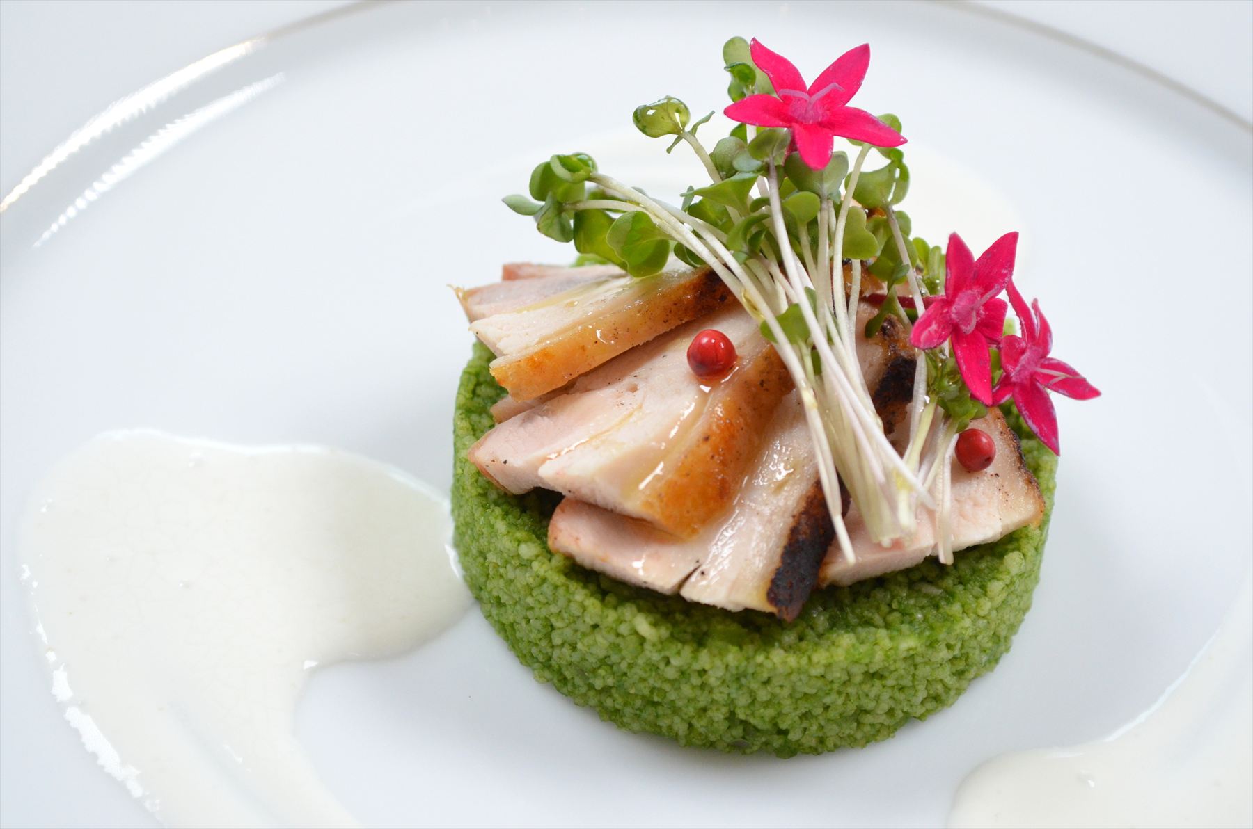 真鯛のポワレ グリーンピースのピューレ