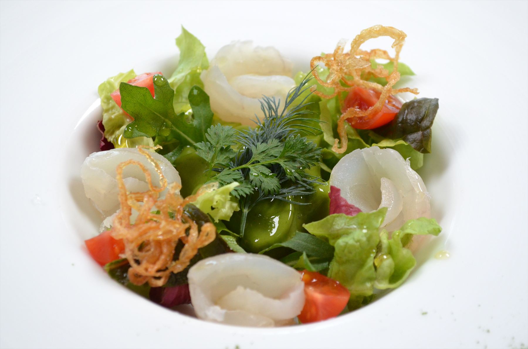 真鯛の昆布〆マリネ 抹茶のエスプーマ